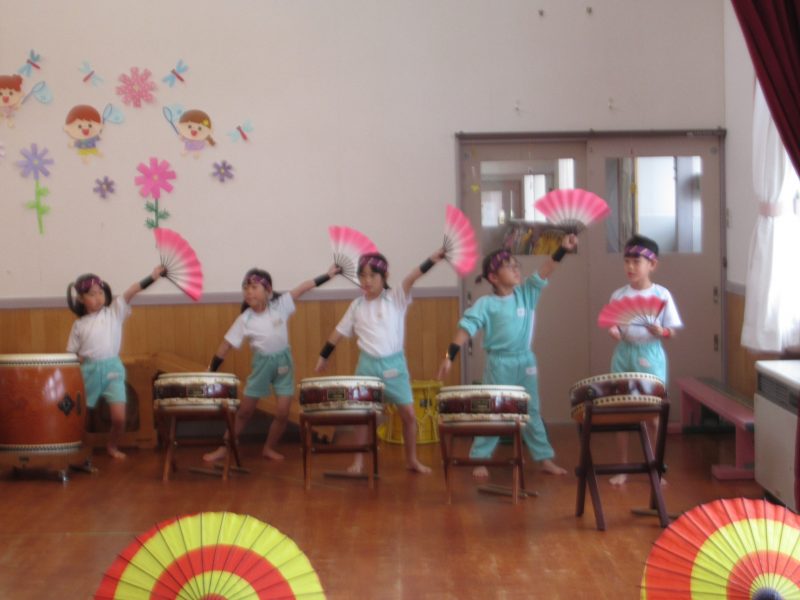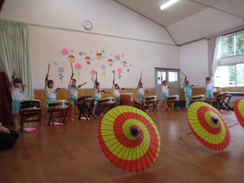 剣野げんき祭りに向け和太鼓練習に励んできたつばめ組のこどもたち。本番前に園内披露という事で、遊戯室に全クラスの子どもたちや先生を招いて和太鼓を発表してくれました。みんなに見てもらって嬉しそうな表情や、ドキドキした緊張の様子が見られる中、堂々と和太鼓を披露する事ができたつばめ組です。