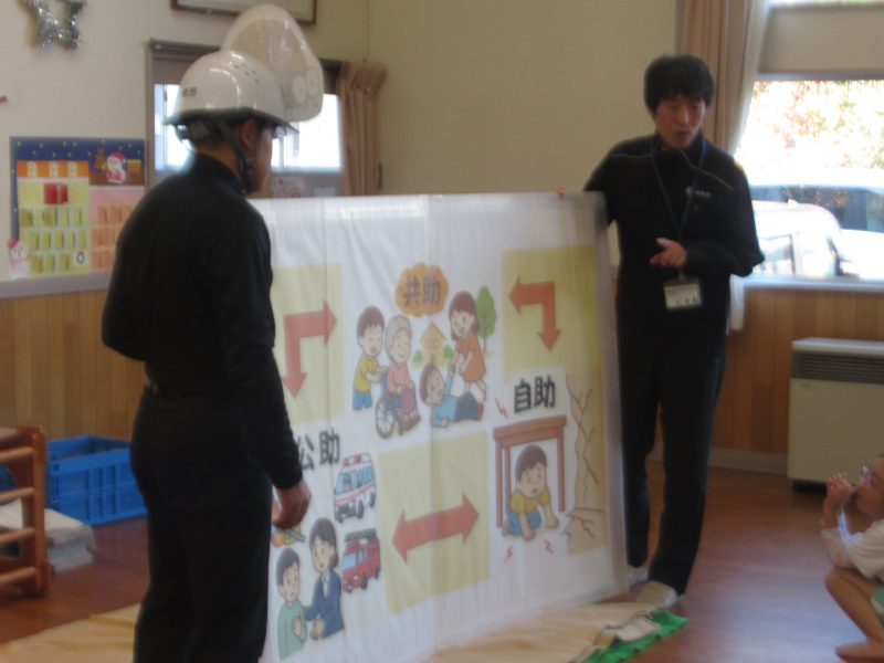 12/11に地域の方、保護者の方をお呼びして市役所の防災課の方による防災教室に参加しました。