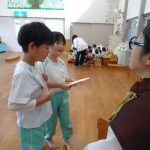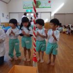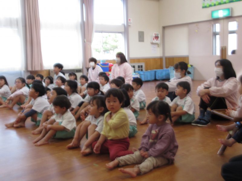 今年はひよこ組からつばめ組までの全園児そろっての歌からスタートし、各クラスの遊戯へと続きました。遊戯では各年齢ごとに、可愛らしい姿やかっこいい姿、また、恥ずかしそうな姿に張り切る姿等々、一人ひとりがとても嬉しそうに披露する様子が見られました。そして、遊戯の後はプレゼント渡しやふれあい遊びで感謝の気持ちを伝え、最後は先生たちからの「うらしまたろう」の人形劇を大好きなおじいちゃん、おばあちゃんと楽しんだ子ども達です。