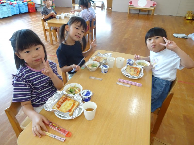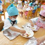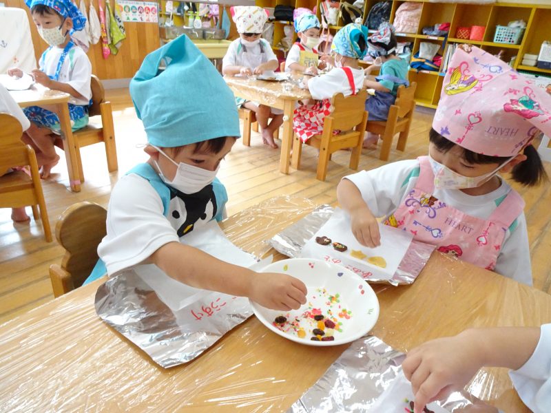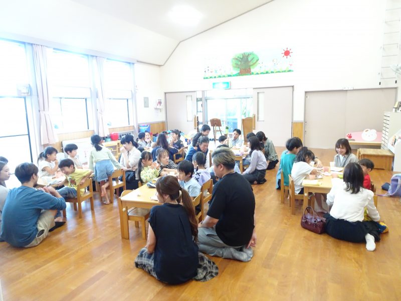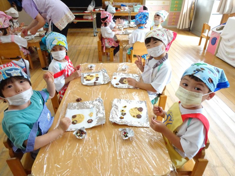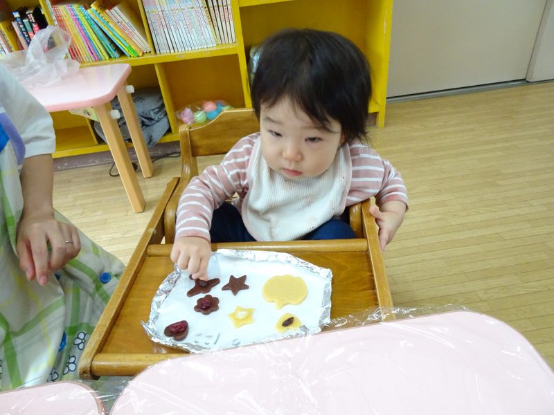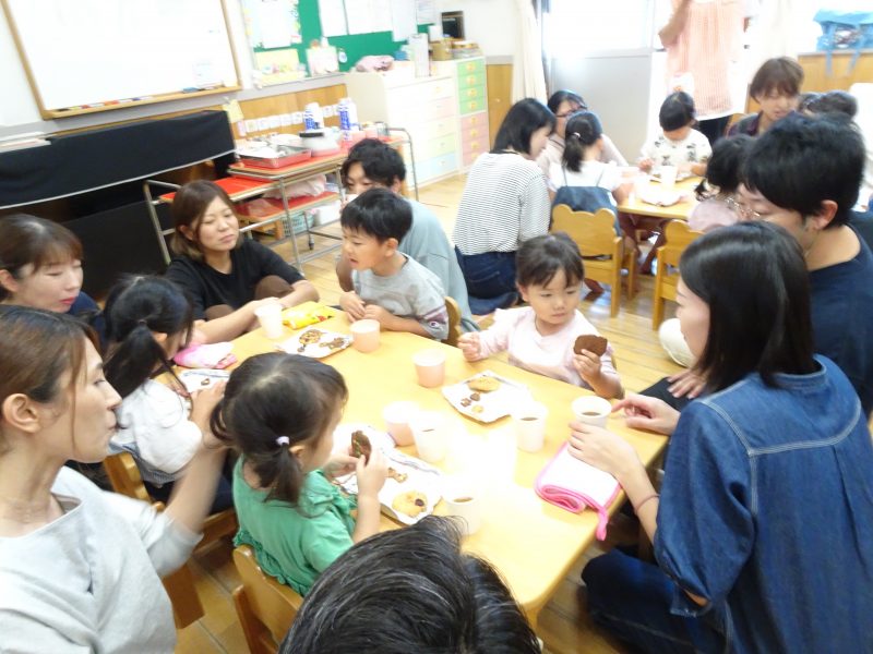 午前中にみんなで手作りクッキーをお家の方の分も楽しみながら作り、午後からのおやつ参観でいただきました。