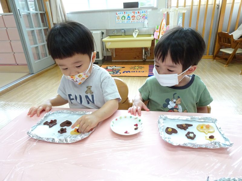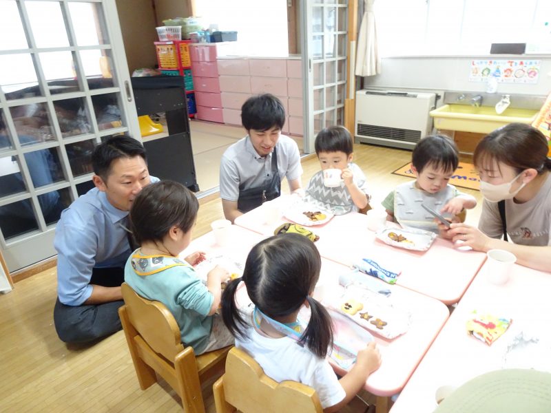 自分で作ったり、トッピングを楽しんだクッキーのできあがりを楽しみにしていた子どもたち。おやつの時間は大好きなお家の方と一緒でますますテンションもあがり、とても嬉しそうに、そしておいしそうにクッキーを食べる姿が印象的でした。